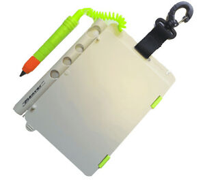 The standard dive slate is conveniently A5 sized multi use dive slate with dive pencil on elastic cord & quick release attachment clip for ease of use underwater. Extremely durable shatterproof corrosion free material. SIZE: 15 x 13cm.
