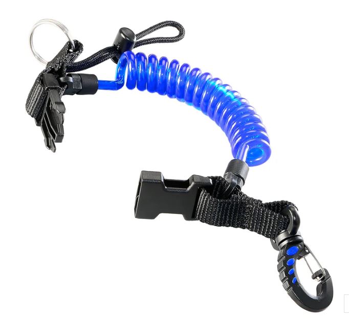 Most commonly used to attach torches and cameras to your BCD, this quick release spiral-end lanyard is great value for money. With 2 mounting options - split ring & corded loop with a toggle - the additional swivel clip is also a game changer. The buckle easily unclips, allow extra length in the lanyard when in use and shorter length for stowing away when not in use.